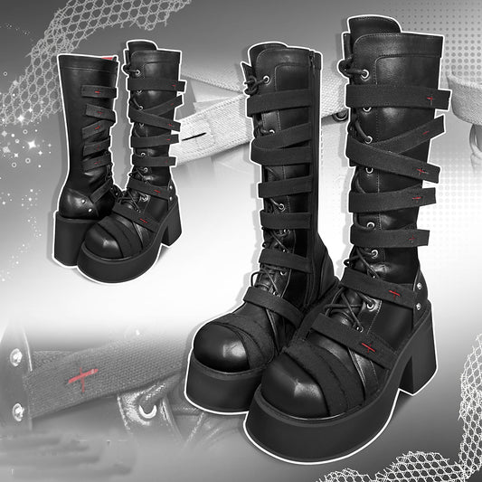 Lolita Gothic Lace-up Cross Boots LS0846